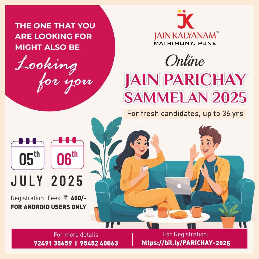 We are thrilled to invite you to the Online Jain Parichay Sammelan 2025. A special virtual event designed to help eligible Jain singles connect, interact, and explore meaningful one-on-one conversations in a respectful and comfortable environment.